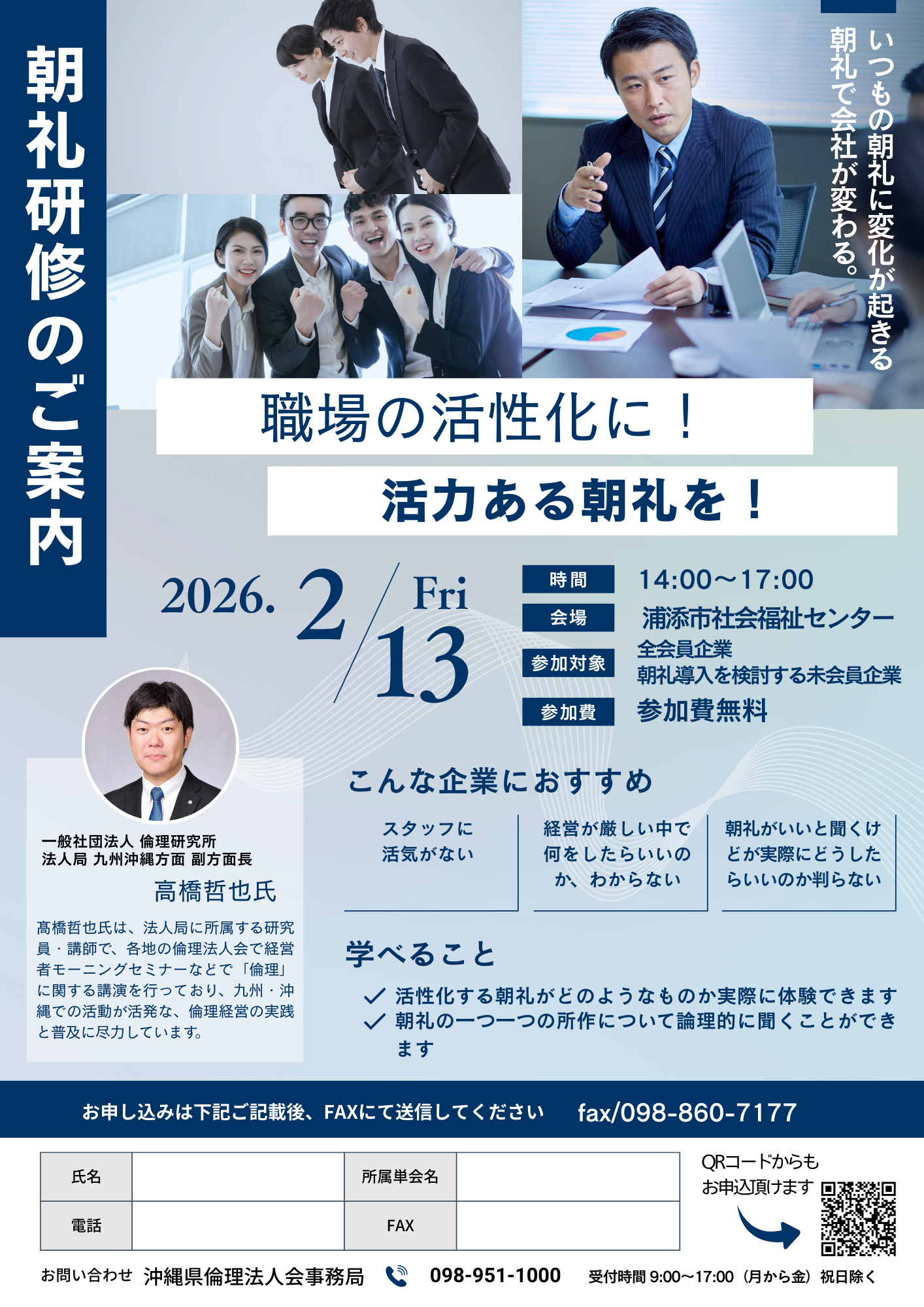 お知らせ・活動報告朝礼委員会より朝礼研修開催のご案内です。